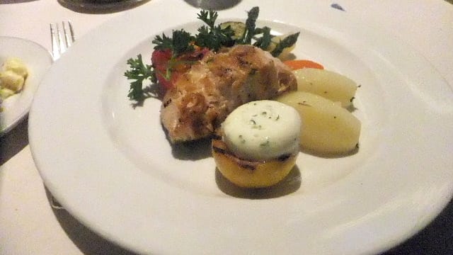 ビクトリア寄港ま船のディナーはサーモングリル。