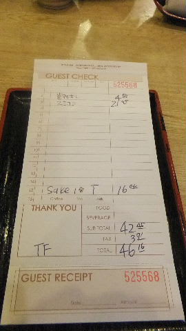 「えっ」 日本酒一合8ドル、茶碗蒸し約5ドル。
