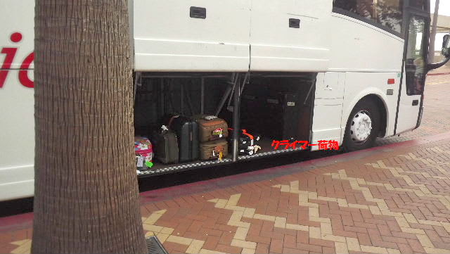 クライマーのオレンジバンドの荷物もバスに格納された。