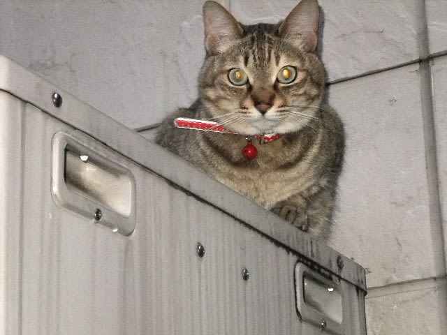 自宅のマンションの前、いつものネコが私の帰宅をニャンと歓迎してくれる。