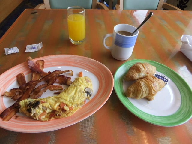 今まで、メインレストランにて、目玉焼きの朝食を食べていた。しかし今回は