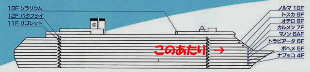6階の上層階「マノン」なる客室の少ないキャビン。