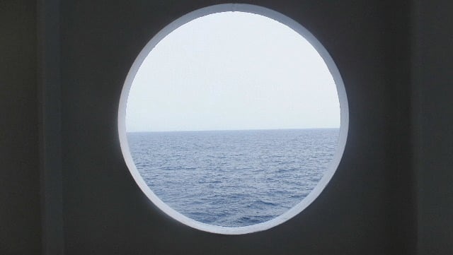 さて、この日も曇り、コスタの丸窓の外は、とんよりしている。