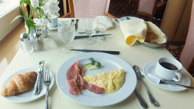 メニューを見ると、今回は日本人半分にて、日本の朝食メニューがある。