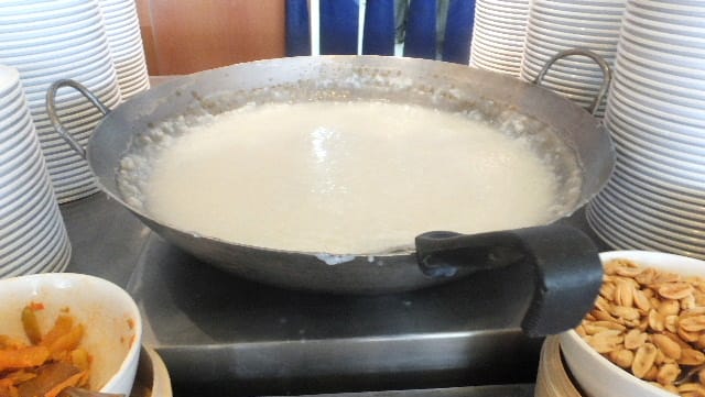 今回は、日本人半分、帰省中国人半分にて、粥も用意されている。