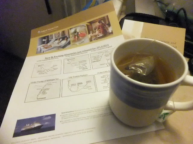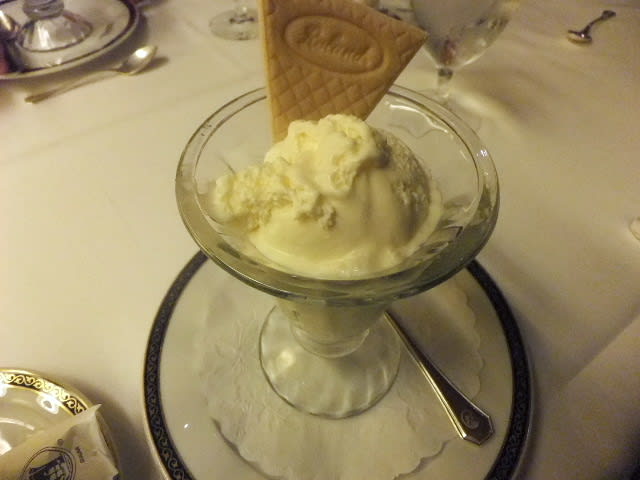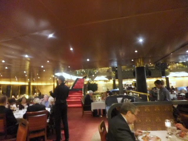 日中、横浜で初めてお目にかかったO夫妻が、親切にも夕食ご一緒にとお誘いいただく。また一部「ノロ」規制解除、そして今日は初のフォーマルナイトにて、メイン