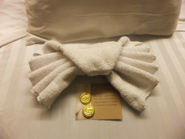 キャビンに帰るとも今日は「かに」のタオルアートであった。