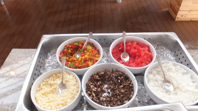 まあ、外のデッキだから、いいのだが食べる環境で調味料の置くにるのは、なんと灰皿だ、ちょっと他の船では考えられない。