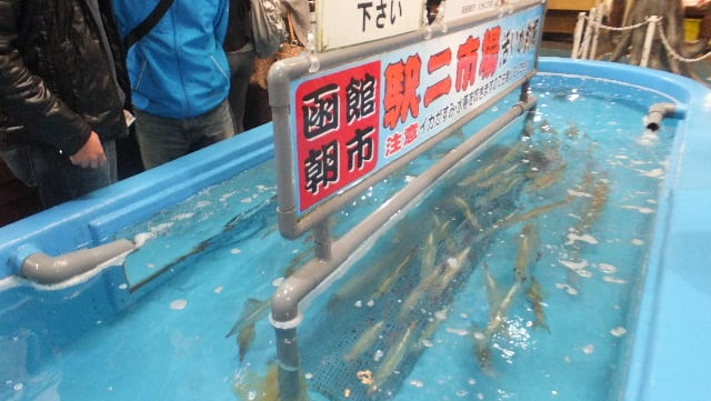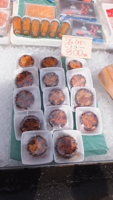 烏賊を食べ市場を散策、ランチのうにの店「むらかみ」に向かう。