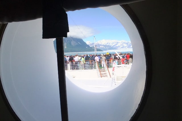 残念ながら、崩落の瞬間は訪れない、さて、唯一の日本人客に会った。米国在住の方にて、私のキャビンより、スペシャルな眺めをご覧いただいた。