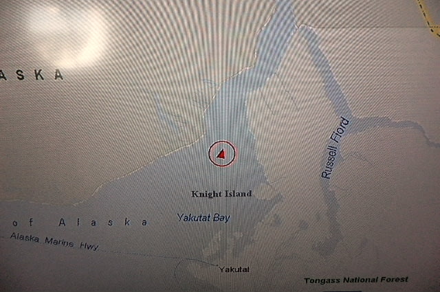 高さがあるのが、グレーシャーベイ、横に長いのが、本日のハバード氷河。