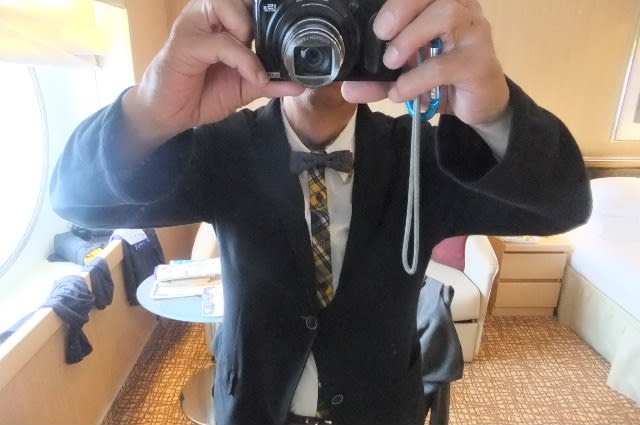 今日はフォーマルナイト、ドレスシャツに、チョータイ、ユニクロの五千円のジャケットにて、メインダイニングにて、牡蠣とロブスターを食べる。