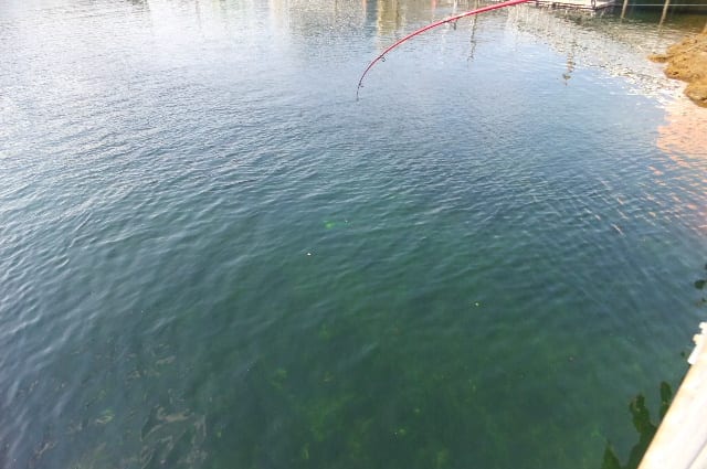 さて、海側のケチカン川に、人だかり、釣竿をもっている。
