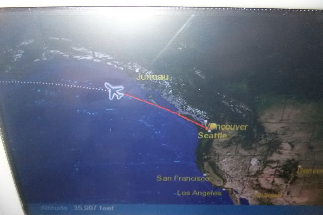 フライトは、丁度バンクーバーを越え、アラスカのアンカレッジ手前の、ジュノーあたりで、太平洋へ。