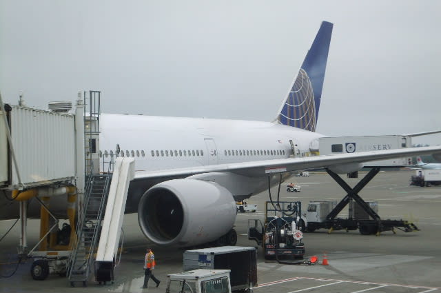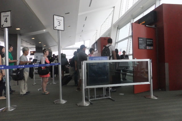 そんなに混んでいない、最後の最後へ機内へ、大嫌いのフライト。