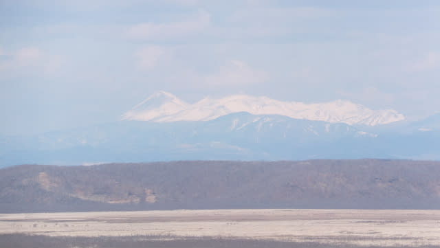雄阿寒岳・雌阿寒岳の眺めか、白き高く聳える絶景であった。