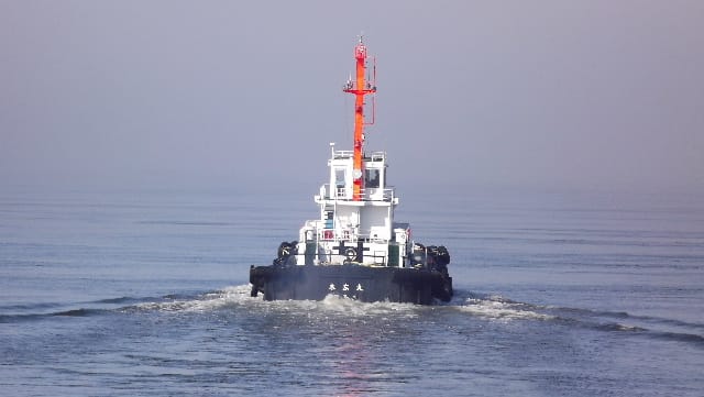 さて上陸、釧路の水先案内のパイロットボートが、遠ざかる。