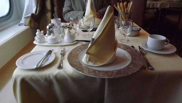 先ずは、ディナーの本日のテーブル、まだ夕暮れである。