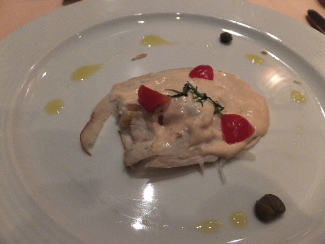先ずは前菜は、「七面鳥のスライスサーモンソース」を選択。