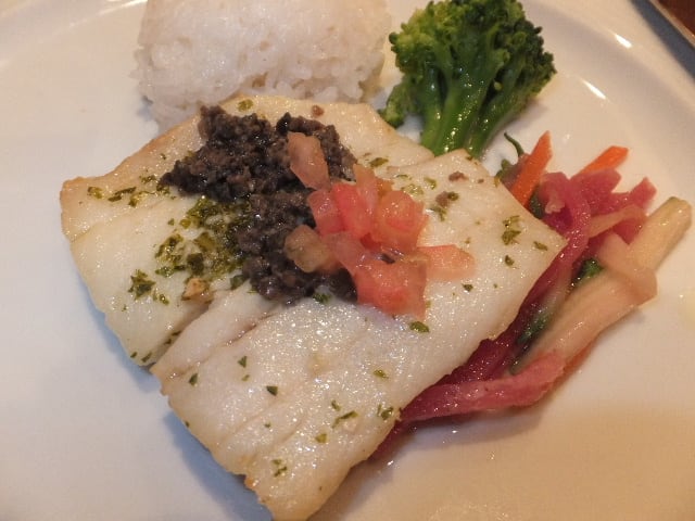 メイン いろいろ選択肢あるが、アラスカ以来食べ続けた「ハリバット」(おひょうカレイ)にした。