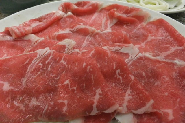 肉はそこそこだ。もちろん国産の霜降りはない、アメリカ牛である。