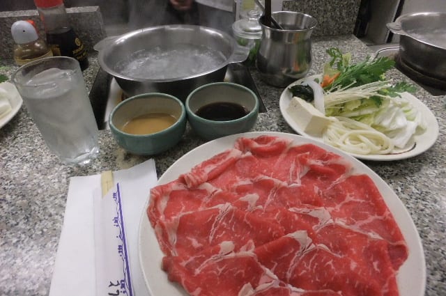 昼ランチ利寿司15dollar、夜シャブシャブ22ドル。