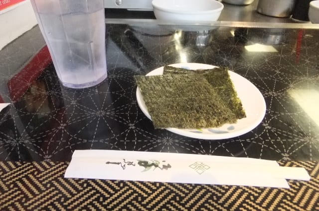 カウンターで待つ。先に海苔がくる。