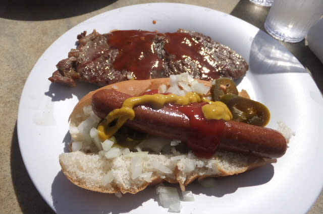 とても柔らかい、味もとても良い。ホットドックが画像の前だが、このステーキ