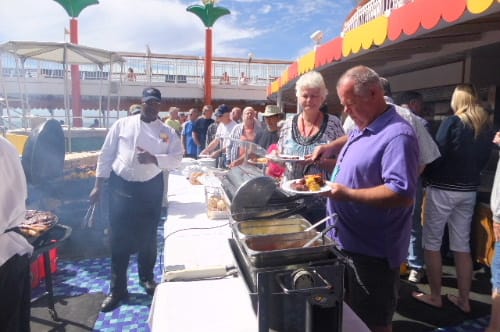 昼は、アメリカ食の代表を食べる。プールサイドの特設キッチン。