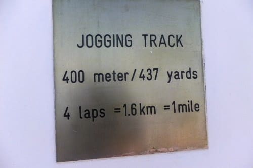 食後一周400m.のジョギングトラックを、早足で十周する。