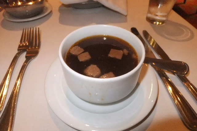 これはめずらしいOX「オックステールスープ」バッファロー牛の尻尾のスープ、ああこれが飲めるのは、幸せ。国内ではほとんど食べられない。大江健三郎の小説にも登場する。