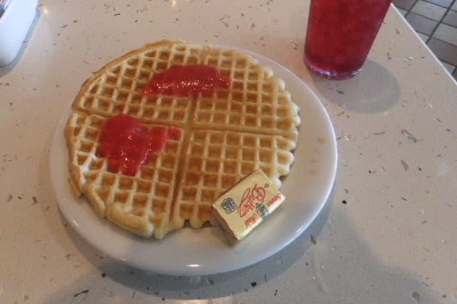 こんな感じにて、朝食は食べる。アツアツのワッフルは美味しい。
