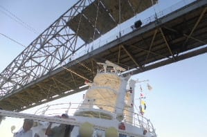 プロフィールを見る入り口のアメリカゲート橋を船は通過