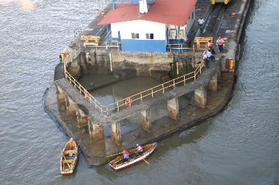 午前8時半、船は第一水門である「Miraflores Loaks」に入り、今aftの水門が閉じられる。