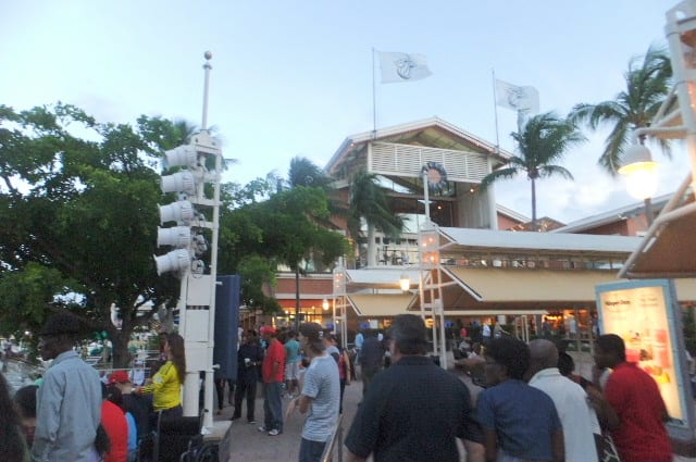 しばらく周辺を散策、夕方にマイアミ一の大きい、「ベイサイド・マーケットプレイス」に食事に行く。実は下船した、港桟橋の裏手にて、無料のメトロムーバーにて行く。