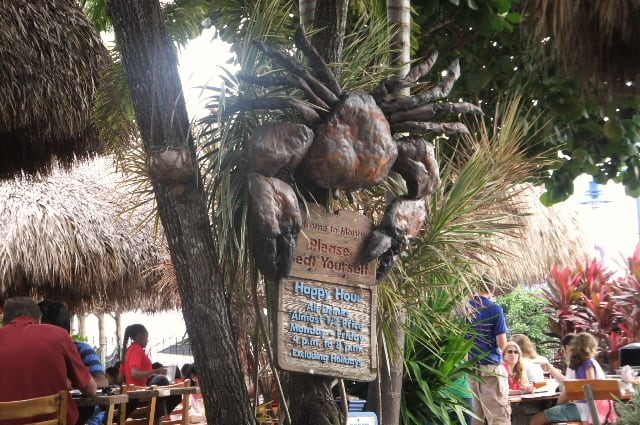 蟹の看板の、マイアミ郊外の、「モンディーズ ストーン クラブ」。