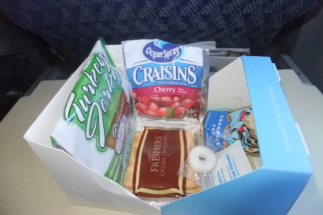 当然、夕飯ありと思うが、国内線の為なし、結局スナック詰め合わせ、8ドルにて