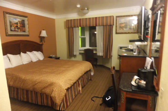 こんなホテル、これ昔のモーテル、部屋3階、エレベーターなし。