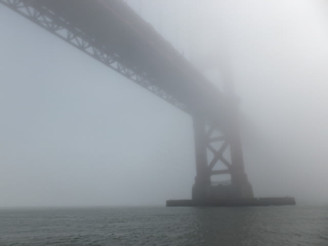 一番安い、観光船で、ゴールデンゲイトブリッジを訪問するが、霧にて以下の様子。