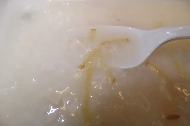 この中華粥とても美味しい。しかし本当にアツアツの朝粥。