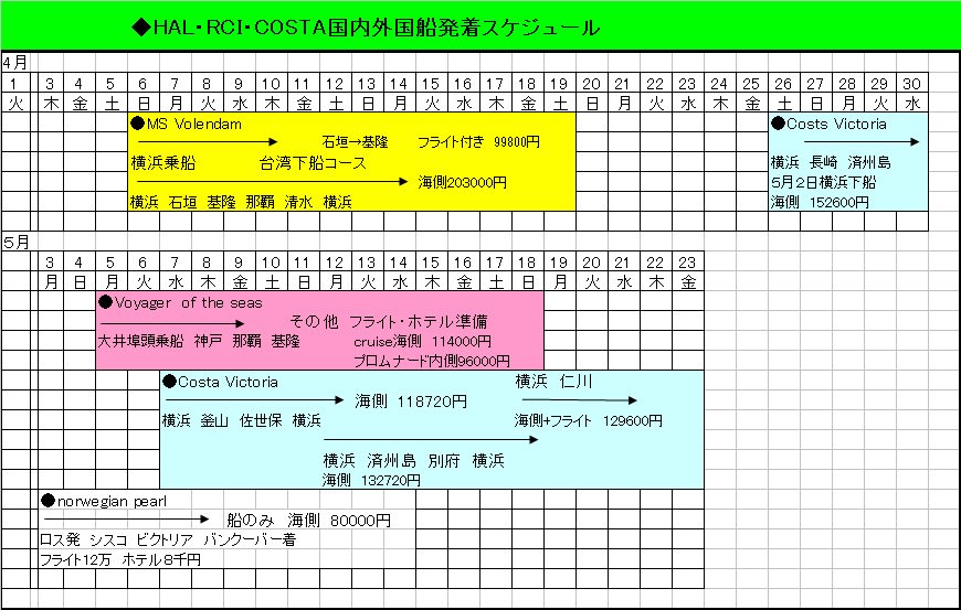 ちなみに4月1日発は、乗船できないので、6日横浜発。