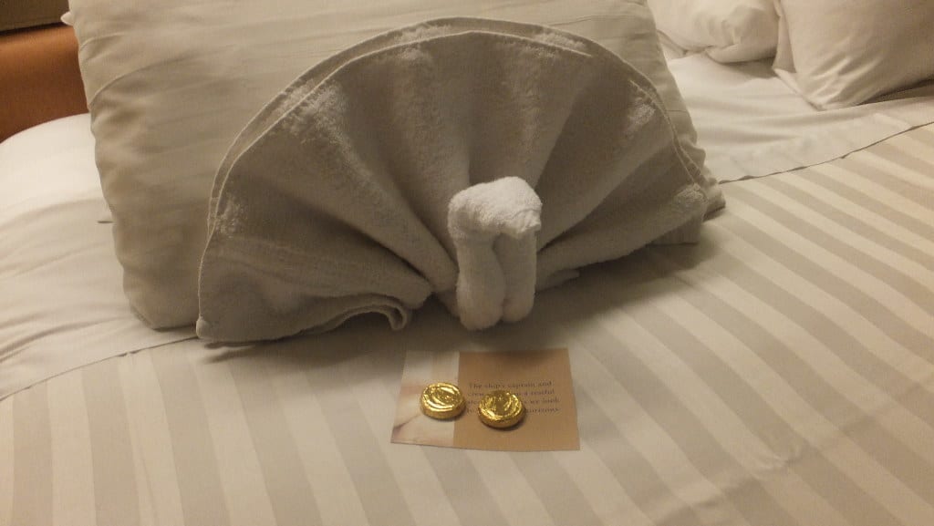 キャビンに帰ると、日々のタオルアートが楽しい。