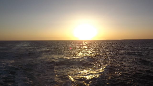 長い太平洋横断終日航海の凝縮朝日と夕日:フォーレンダムで往く横浜発太平洋横断アラスカ・カナダの船旅