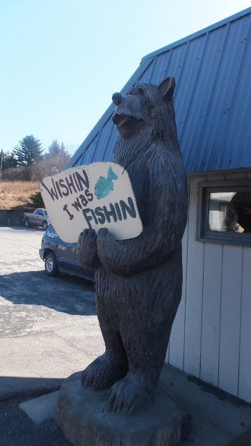 地元の釣り、スポーツ用品店のお出迎えは、熊。