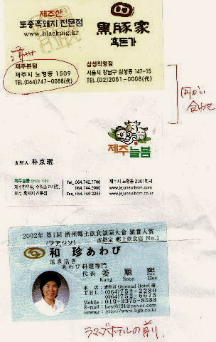 しの様 実は、寄港日は雨が確定しました。なんたるチァ。 多分今回は、上記名刺の店と思います。なんとも韓国観光局と二度も打ち合わせ。 三度目は、船です。とにかく分担なく、全て計画です。 なんとか満足いただける様努力。