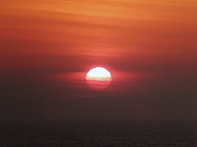 しかし、船から海上に没する夕日は、皆初めて感動していた。