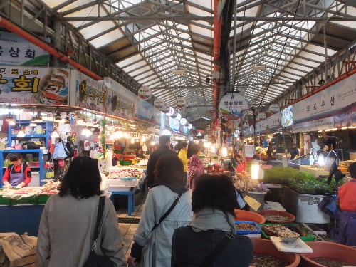 先ずは、済州島一番の、「東門市場」、すごい海鮮と肉、野菜。