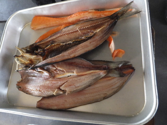 本日は、7人にて、牡蠣の人、4名、ホタテ3名、そして皆で鮭ハラス二つ、ホッケ二枚にしん一枚、希望の人、シシャモ、ライスと、筋子カップ二つ。