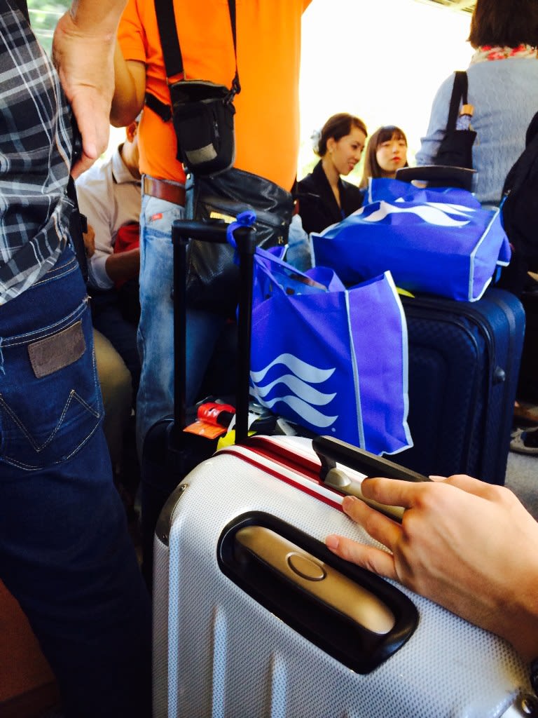 ![](embed:photo/79195) なんか1時間前から、雨止み、波も静か、 明日到着予定が、もう伊豆の大島沖縄か?、 あと四時間くらいで横浜大桟橋。 台湾から 22ノット高速航行。もう大桟橋は近い。 大画面液晶ビジョンの前にも人はいな