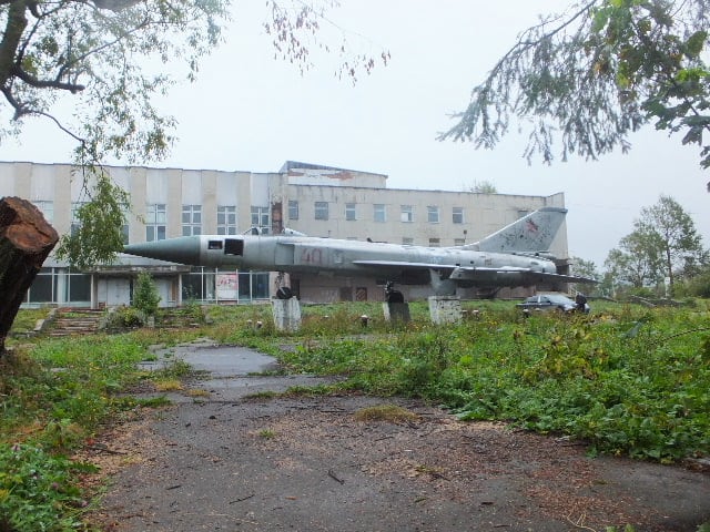 唯一満足したのが、側の建物の、古いミグ戦闘機。